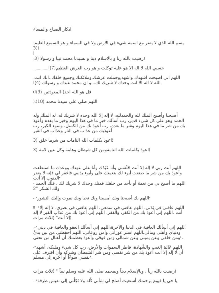 اذكار الصباح والمساء مكتوبة مختصرة Pdf 2019