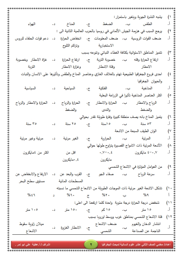 جغرافيا توجيهي اسئلة اختيار من متعدد معلمي ومعلمات فلسطين Facebook