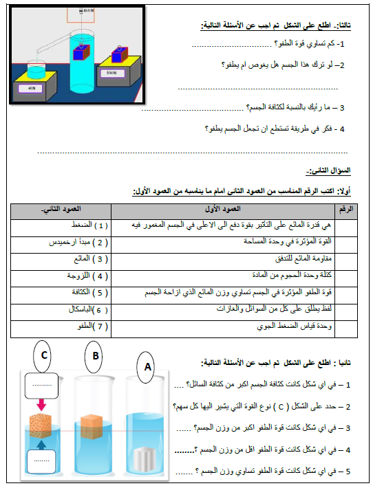 مراجعة درس خصائص الموائع علوم صف تاسع فصل ثاني مدرستي الامارتية