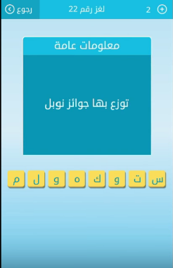 حل سؤال توزع بها جوائز نوبل من لعبة رشفة لغز رقم 22 للمجموعة الثالثة صقور الإبدآع