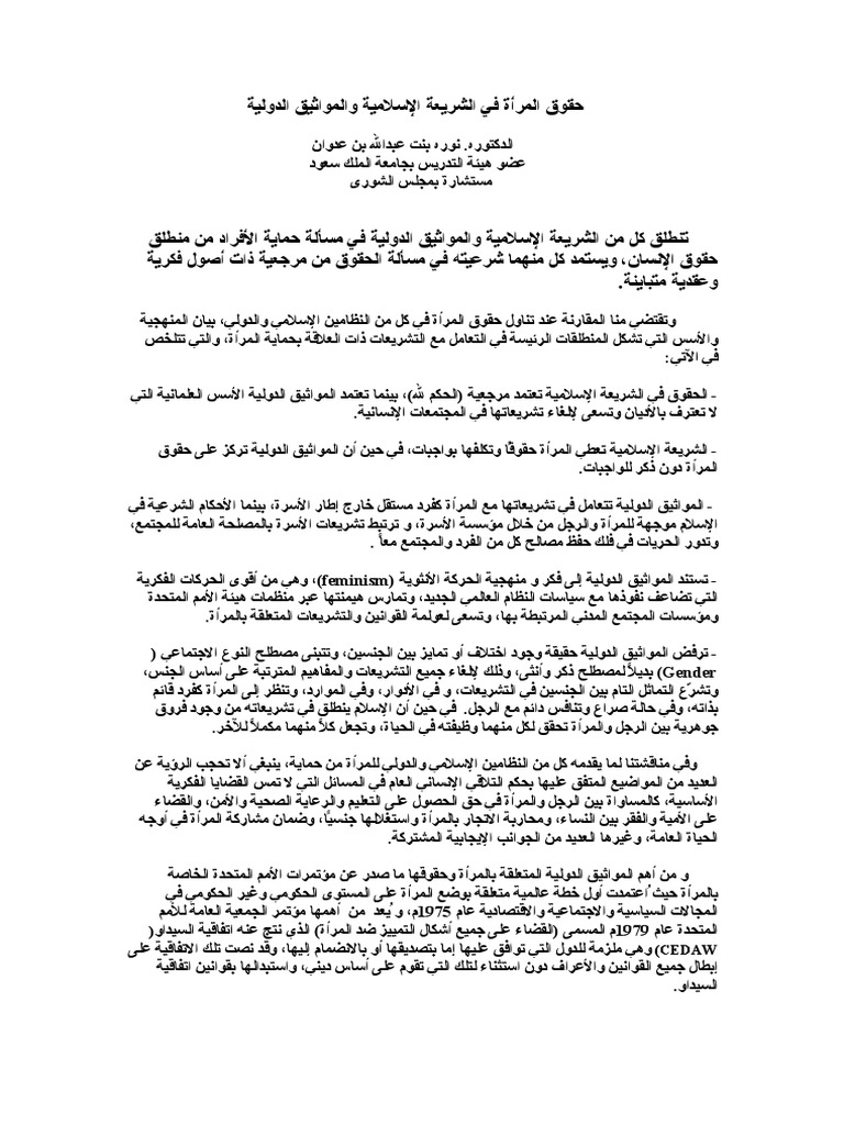 حقوق المرأة في الشريعة الإسلامية والمواثيق الدولية Doc