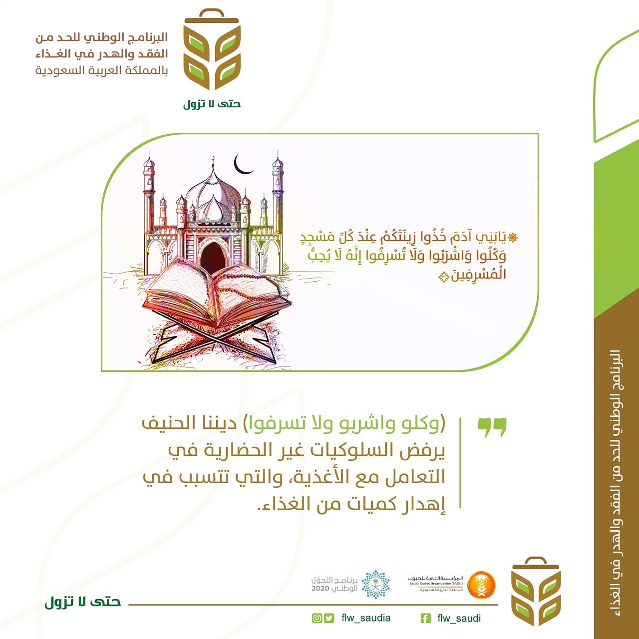 البرنامج الوطني للحد من الفقد والهدر في الغذاء בטוויטר وكلو واشربو ولا تسرفوا ديننا الحنيف يرفض السلوكيات غير الحضارية في التعامل مع الأغذية والتي تتسبب في إهدار كميات من الغذاء الفقد والهدر حتى لاتزول