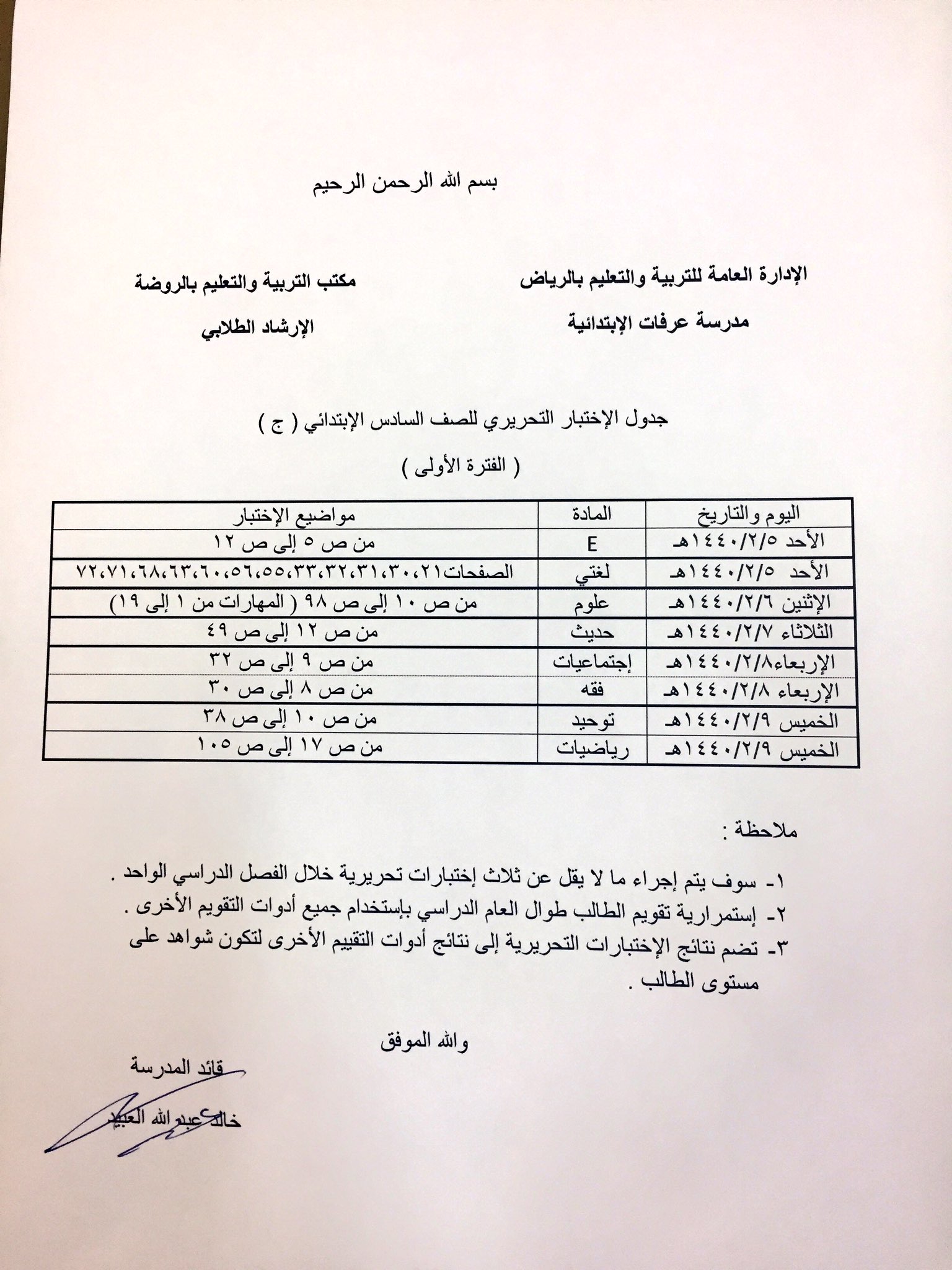 مدرسة عرفات On Twitter جدول الصف السادس أ ب ج