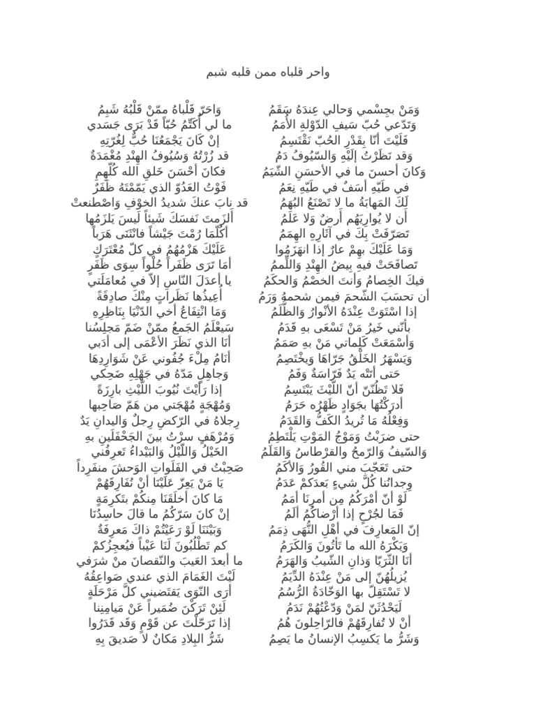 قصيدة واحر قلباه ممن قلبه شبم أبو الطيب المتنبي