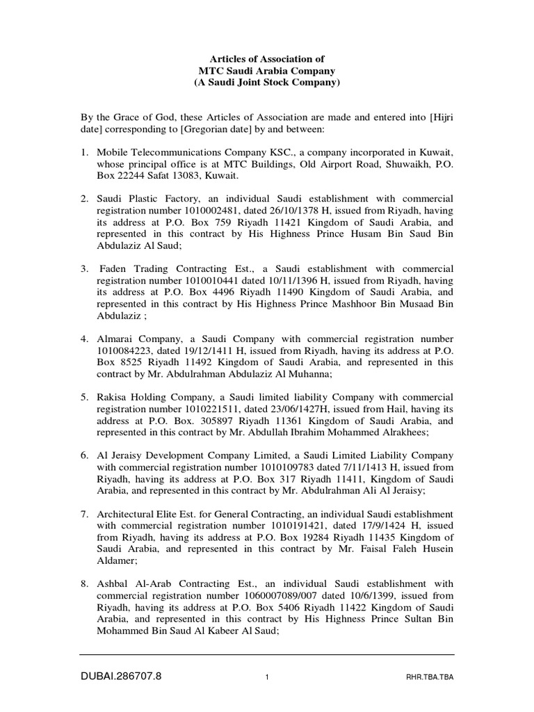 Zain Ksa Articles Of Association En Riyadh Saudi Arabia