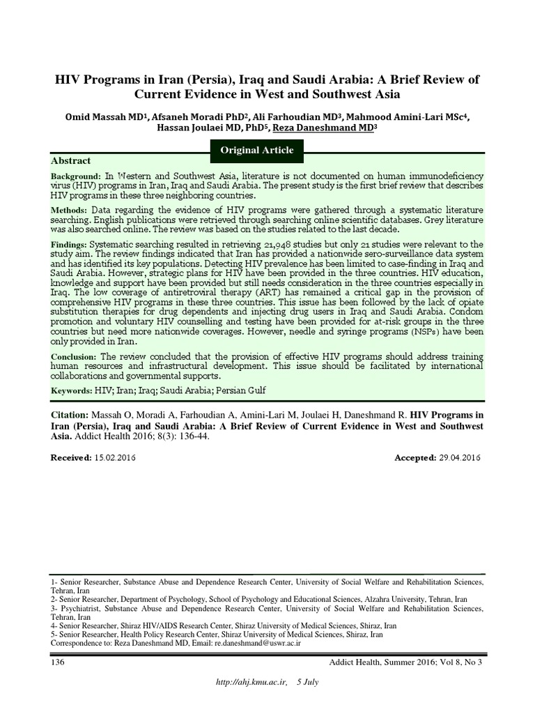 Hiv Programs In Iran Persia Iraq And Saudi Arabia A Brief Review Of Current Evidence In West And Southwest Asia Hiv Aids Sexually Transmitted Infection
